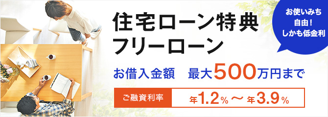 当行で住宅ローンをご利用中のお客さま限定の特別なフリーローンです。