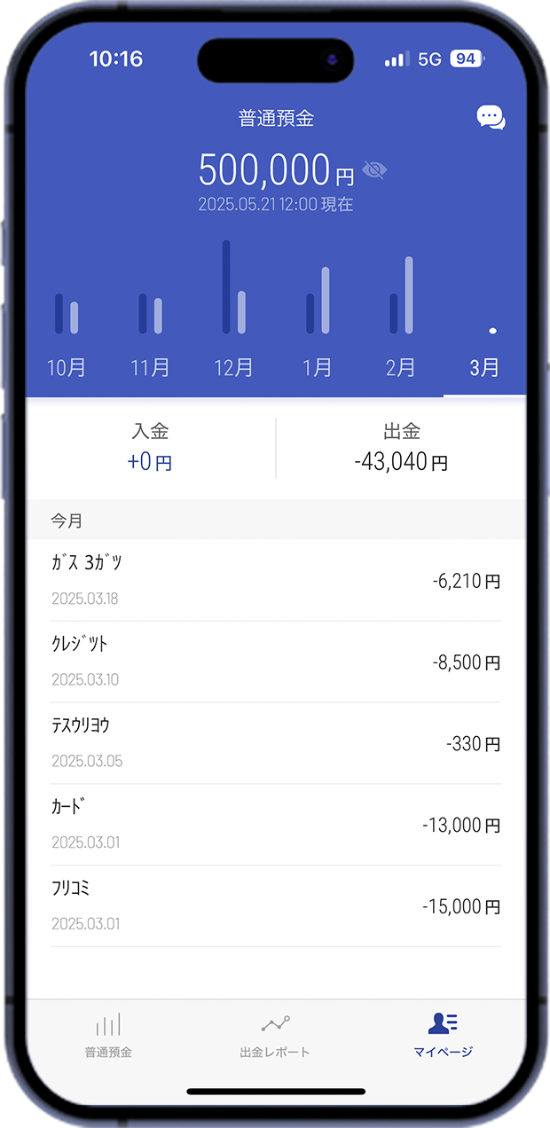 残高・入出金明細を