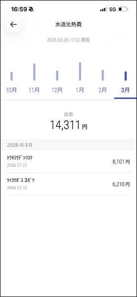 出金明細をカテゴリ別に月ごとに確認できます。